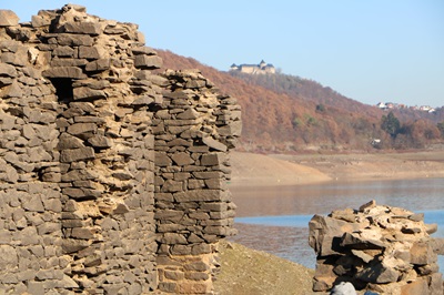 "Edersee-Atlantis" bei Niedrigwasser im Herbst Mystische Landschaft im Herbst und Winter